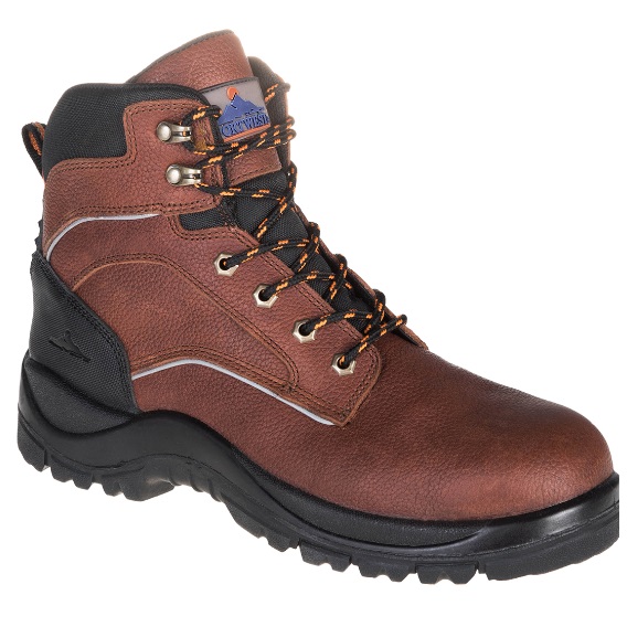 Protective steel toe cap Puncture resistant steel midsoleFull grain tumbled brown leatherDirect injected dual density constructionLightweight PU cushioned midsoleSlip, fuel and oil resistant rubber outsoleWaterproof membraneHeat resistant outsole.